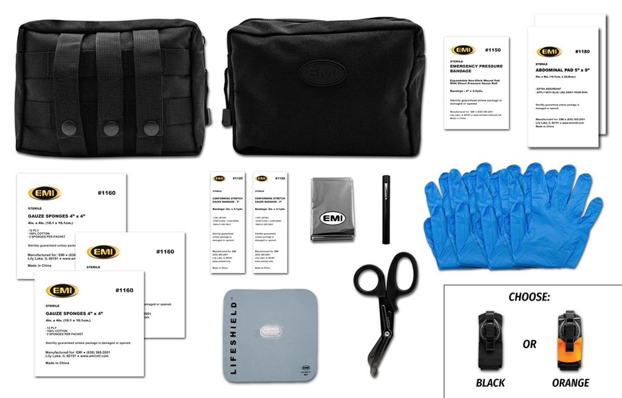 EMI's E.T.R.™ Active Shooter Kit is designed to provide the First Responder with basic but essential equipment to stop life-threatening bleeding. The kit includes the most sought-after tourniquet for 1st Responders, the X8T Tourniquet. It features a simplified windlass dial, rapid one-hand application, a quick release buckle, and is self-locking. It's also effective on limbs from pediatric to adult sizes. There are 3 styles to choose from: Basic, Standard, and Deluxe.