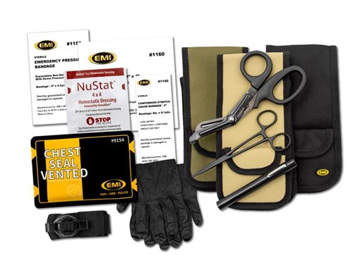 EMI's E.T.R.™ Quick Response Holster Set is used for critical tactical/medical emergencies. The holster is crafted from 1000 Denier Cordura Nylon, which is non-porous and waterproof. It has a quick-release Velcro belt loop for easy attachment and removal from belts, gurneys, kits, etc.